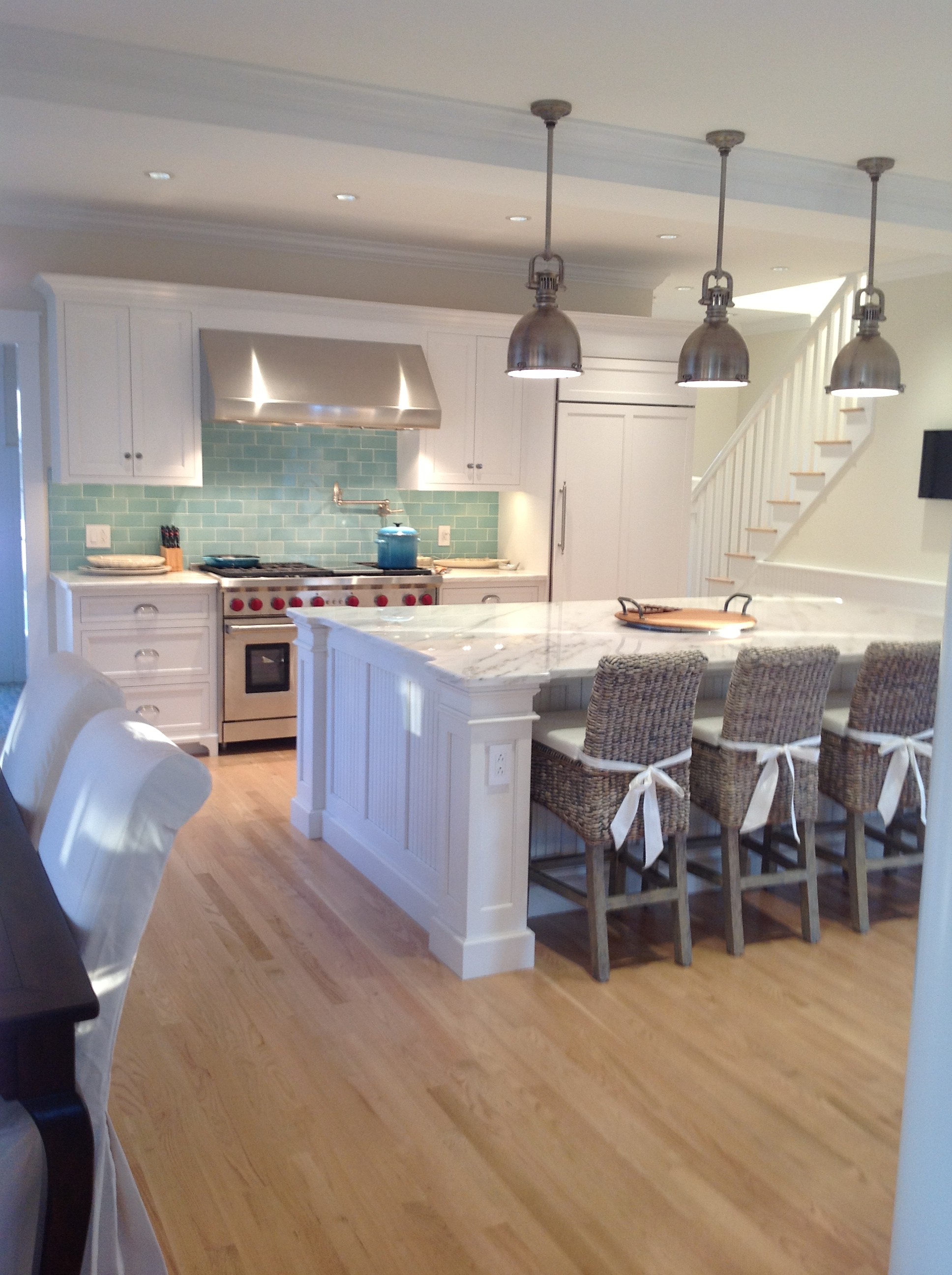 We were honored to work with this homeowner in Edgartown, MA, helping to design their coastal kitchen and bath, and dining area adjoining the kitchen.